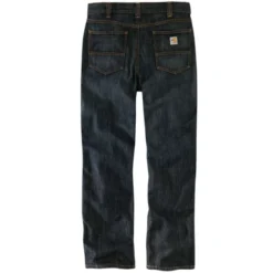 Take on cold weather in these men’s Carhartt flannel-lined jeans. A soft flannel lining adds warmth to cold days. Rugged, washed denim stands up to jobsite wear. Their relaxed fit offers a little extra room through the seat and thigh with a straight leg opening.