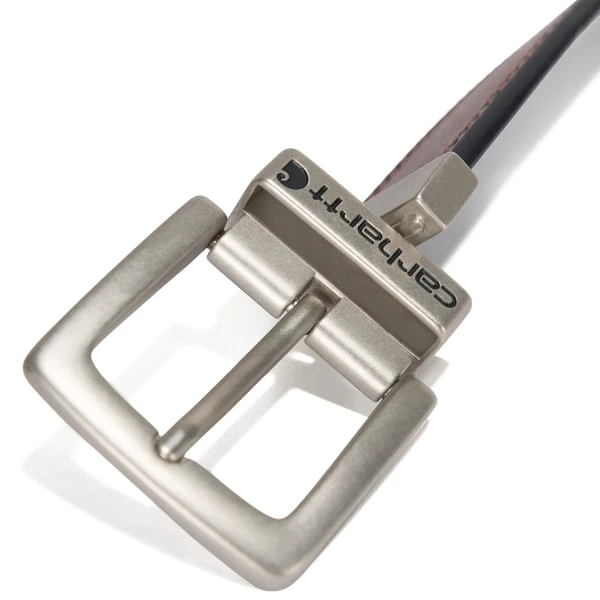 With this men’s reversible belt, one belt is all you need. It’s made of full-grain leather in a rich oil finish. One side of the strap is brown and the other is black for versatility. The harness buckle has a nickel finish.