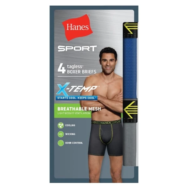Stay cool and dry during any activity in the Hanes X-Temp Boxer Briefs. X-Temp technology is designed to adapt to your temperature so you start cool, keep cool.
